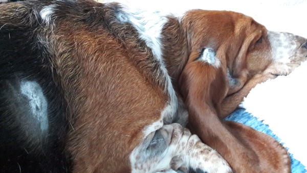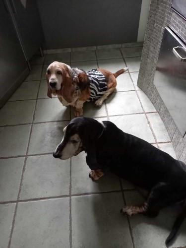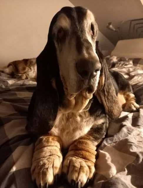 . Jak to Jola pisze "Nasz Skarbek". Paris co jakiś czas odwiedza weterynarza, jak to u basseta, ciągle coś. Ogólnie Paris i Chili z zasiedzenia mają się dobrze, i się nie rozstają, ale tak nie było od początku 😄. Sami widzicie jak teraz śpią razem