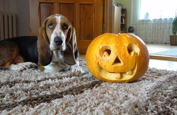Witam wszystkich bassecich Forumowiczów. Korzystając z nadmiaru wolnego czasu jaki mam teraz ( studiuję zaocznie i niestety nadal szukam pracy), coraz częściej przebywam na forum. Dzisiaj zrobiła nam się piękna pogoda, więc wszyscy domownicy wzięli się za gruntowne porządki w domu i ogrodzie. Zwierzaki na czele z Buźką oczywiście pomagają nam jak mogą- uciekając po ogrodzie z sekatorem ( nie wiem czemu on się Buźce, aż tak spodobał) lub wynosząc drewno z drewutni. Wczoraj przygotowaliśmy się na Halloween, wycinając duża dynię, w czym psiaki nam czynnie pomagały Liczę na to,że uda mi się zdobyć parę zdjęć naszych pracusiów, to je tutaj wrzucę Mam nadzieję,że u Was też tak pięknie świeci Słonko, Pozdrawiam