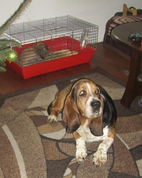 Fred dobry , Basco też łeb do klatki świnek morskich ładuje i im karmę przeszukuje |