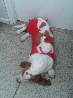 Fionka zrobiła siusiu i napiła się wody teraz znowu chrapie pod czujnym okiem mojej mamy...