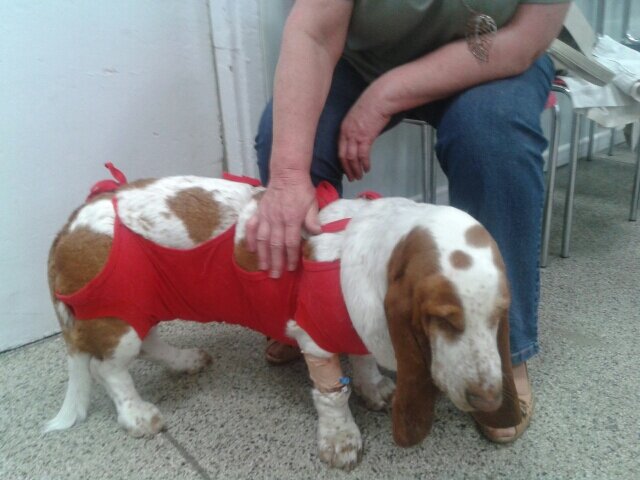Kochani ! Fionka jak już wiadomo jest po sterylizacji. Dużo śpi, ale ładnie je jak to pewnie każdy basset. Codziennie wychodzimy na parę minut do ogródka, pochodzi trochę i chętnie wraca na posłanie. Dziękuję bardzo za wsparcie finansowe i duchowe wszystkim forumowiczom. Myślę, że nadszedł dla mnie lepszy czas i po tych zeszłorocznych przykrych doświadczeniach z Fionką będziemy miło spędzać czas. Obecnie „mieszkamy” w piwnicy, co by Fionek nie musiał wchodzić po schodach. Fionka przy operacji nie chciała oddychać więc była operowana pod respiratorem. Ma trochę nie takie jak powinna mieć wyniki echa serduszka, będziemy czuwać nad tą sprawa później. Na razie jest wszystko na dobrej drodze. W tej chwili ma wszystkie niezbędne szczepienia, zdjęty kamień z zębów, korekcje pazurków. Weterynarz powiedział, że ma fajny charakter, tak bo to prawda. Mój mały misiu zgadza się na wszystko, jest bezgranicznie ufna, kochany piesek. Zgadza się z Tosią , toleruje żółwia, i również nie przeszkadzają jej koty. Tuli się do nas jest przylepką no i oczywiście śpi w łóżku to pierwszy pies któremu na to pozwoliłam, a ona tylko to sobie z uporem maniaka wywalczyła, no niech już tak będzie bo nie powiem, aby to nie było miłe. Cieszę się, że ją mam, nie zapomniałam o żadnym swoim poprzednim psie a było ich trochę oj było. Pozdrawiam, Basia z Fionką