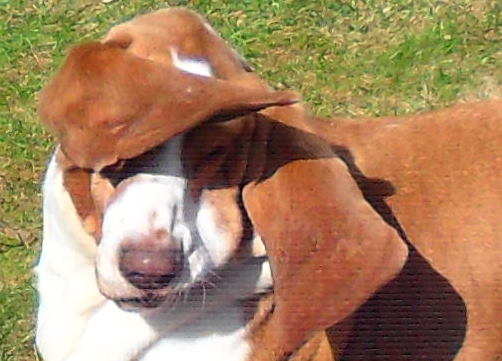 Fredzik ma dużo fotek, ale gdy je minimalizuję do możliwości wklejenia, to najczęściej zostaje tylko nos. Musimy robić zdjęcia z większej odległości. Pozdrawiam wszystkich serdecznie, szczególnie gości Freda, długo jeszcze stał w ogrodzie po waszym odjeździe i nie bardzo wiedział o co chodzi. Ale jak dostał prezentową kosteczkę, to wszystko wróciło do normy.