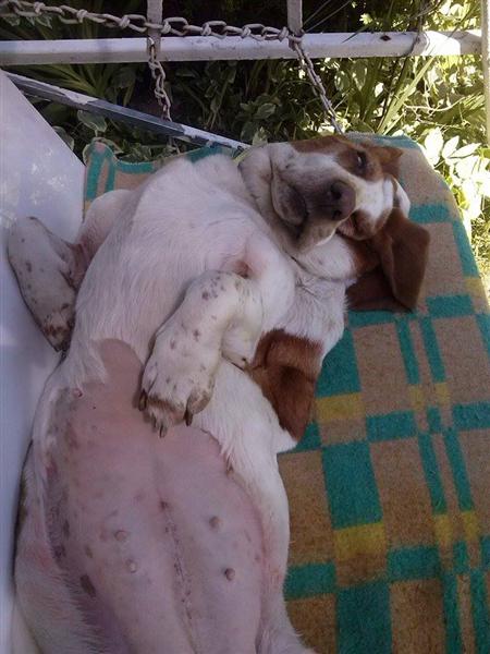 I nie daj się wypchnąć z łóżka, Zonda też sobie bardzo takie spanie chwali zwłaszcza, że tak wytresowała mamusię, że ta pod groźbą utraty kończyny (odcięcie krążenia) nawet nie drgnie żeby basseciątka nie obudzić