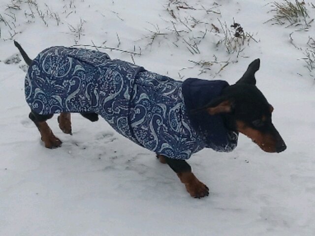 Dotychczas chodziła w sweterku wydzierganym przez Marynię,ale potrzebuje czegoś cieplejszego,czegoś odpornego na wiatr i śnieg/deszcz...