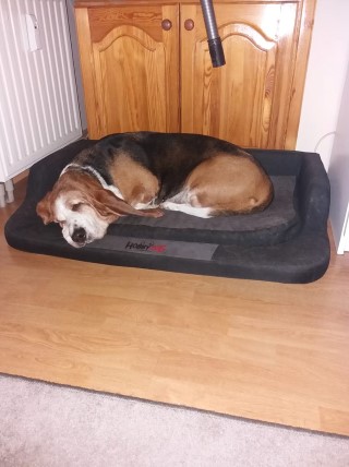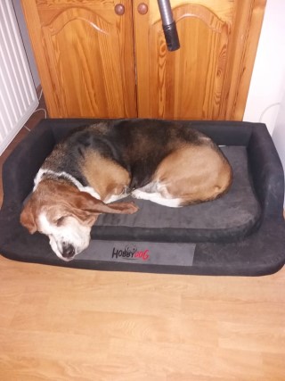 Klusia w legowisku ortopedycznym, wymiary 75 x 50