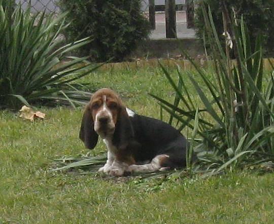 A więc ot o jest mój basset, który nazywa się Bafi , ma dopiero 5 miesięcy , ale fotka na dworze jest dosyć stara ; /